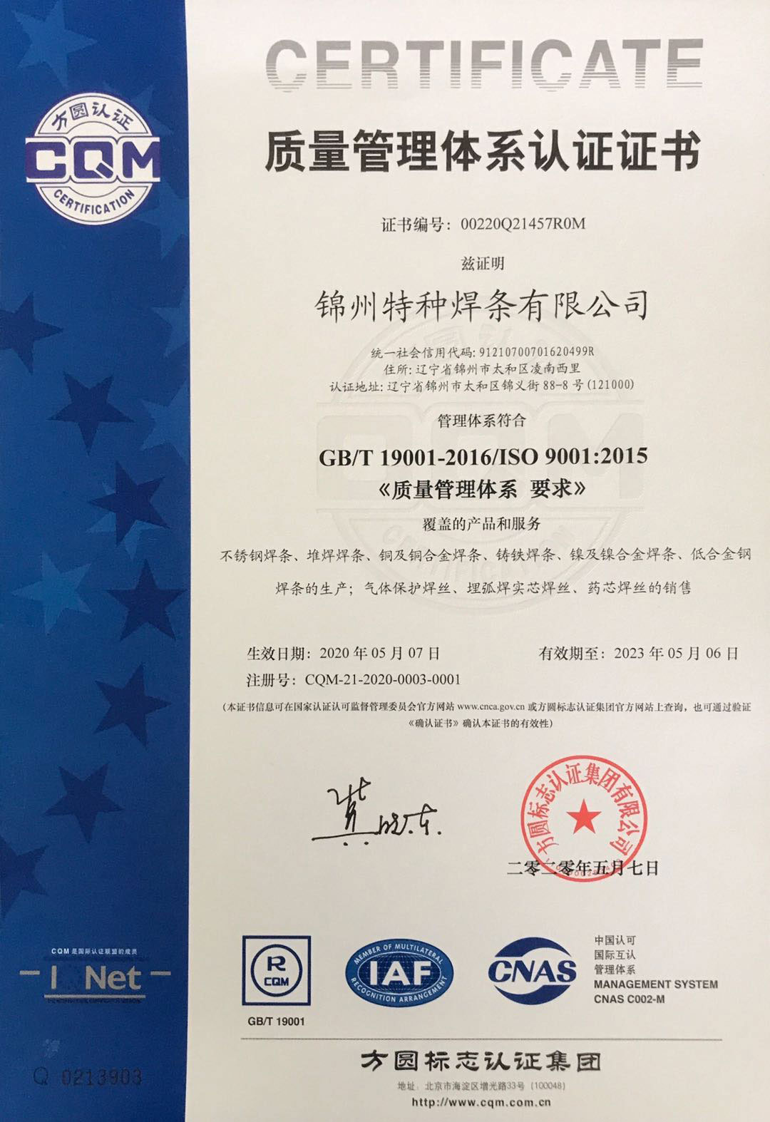 Detail:Production of stainless steel welding rod, surfacing welding rod,copper and copper alloy welding rod, cast iron welding rod, nickel and nickel alloy welding rod,low alloy steel welding rod; sales of gas shielded welding wire,submerged arc solid welding wire and flux cored welding wire and related management activities